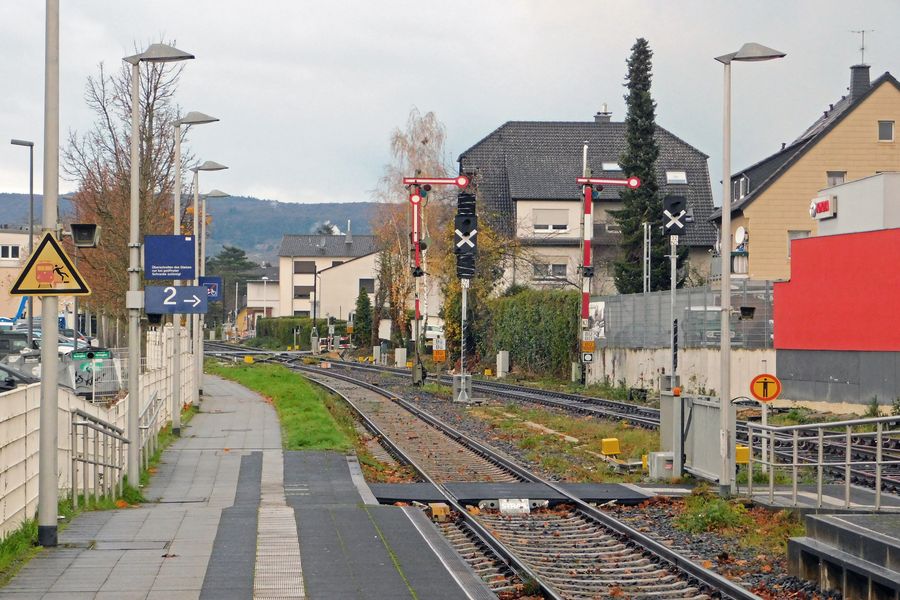 Het vertrek van een trein richting Remagen over het linkerspoor. (foto: Peter-Paul van Birgelen)