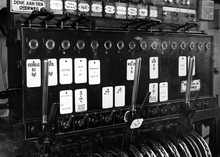 Het semafoorbloktoestel van post T Tegelen. Jaren zestig.