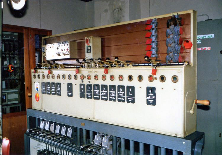 De blokkast in stellwerk Kf d.d. 7 mei 1992. Alleen het blokstelsel richting Bedburg - Hau is nog in gebruik. |