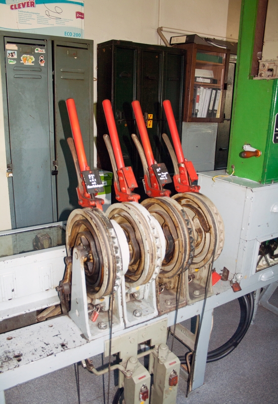 De trekdraadspaninrichtingen in stellwerk Rf. (Foto: P.P. van Birgelen)