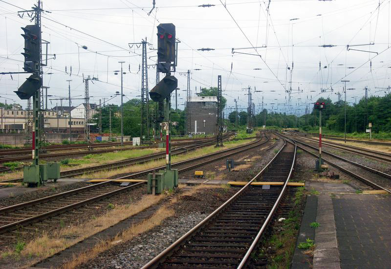 De spoorlijn richting Gelsenkirchen Hbf gezien vanuit stellwerk Wst. (Foto: P.P. van Birgelen)