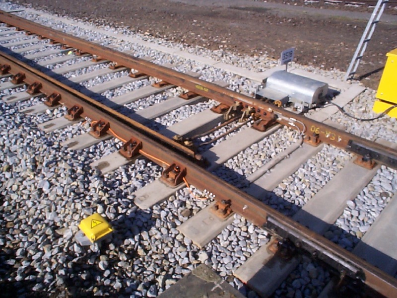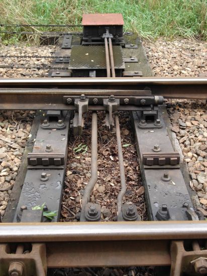 Een electrisch wissel te Schin op Geul. (Foto J. Notenboom)