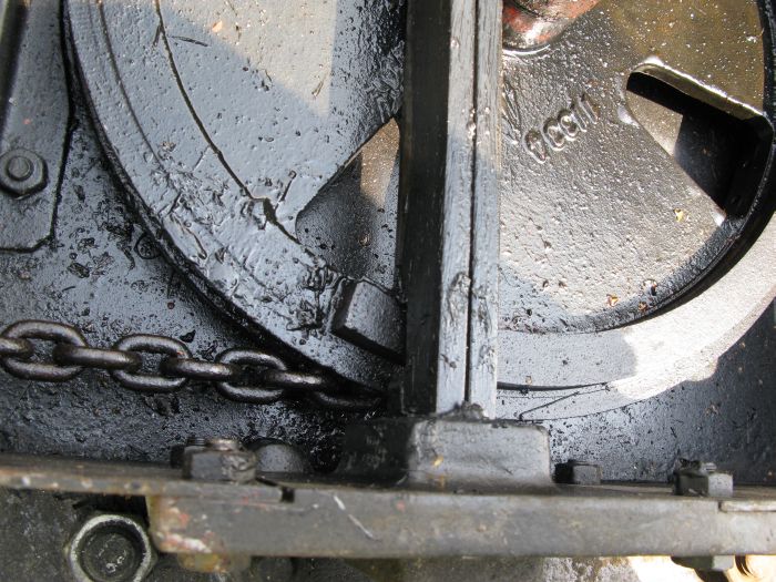 Wissel 31 te Wijlre. Onderop de steller waar bovenop het grendel is gemonteerd. (Foto: G. van Dalen)