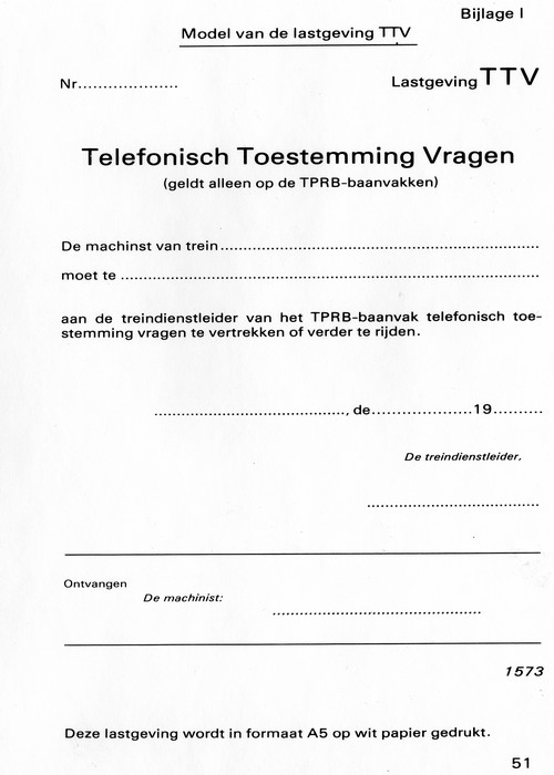 Op TPRB baanvakken was een bijzonder model lastgeving in gebruik. Deze lastgeving geldt alleen op de TPRB-baanvakken.
