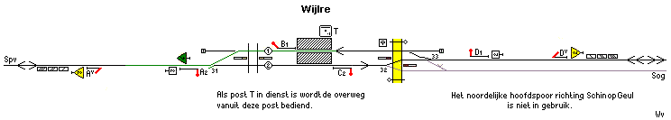 Noot: De vensters Blok naar Spv, Voorbijgang bij Spv en Enkelspoor Spv zijn op deze tekening niet in dienst. Deze worden gebruikt als Post T in Wijlre uitgeschakeld is. Dan worden de blokvensters vanuit Post T bediend.