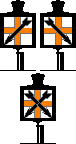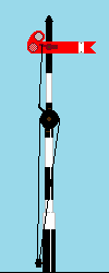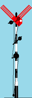 |  | Een laaggeplaatste lantaarn met een vierkant melkwit veld met een oranje rechtopstaand kruis. Daarop aangebracht een of twee met de punt schuin omlaag gerichte pijlen. | Dagsein verlicht. | Stop voor rangeerbewegingen op het spoor waarheen de pijl(en) wijst (wijzen). |