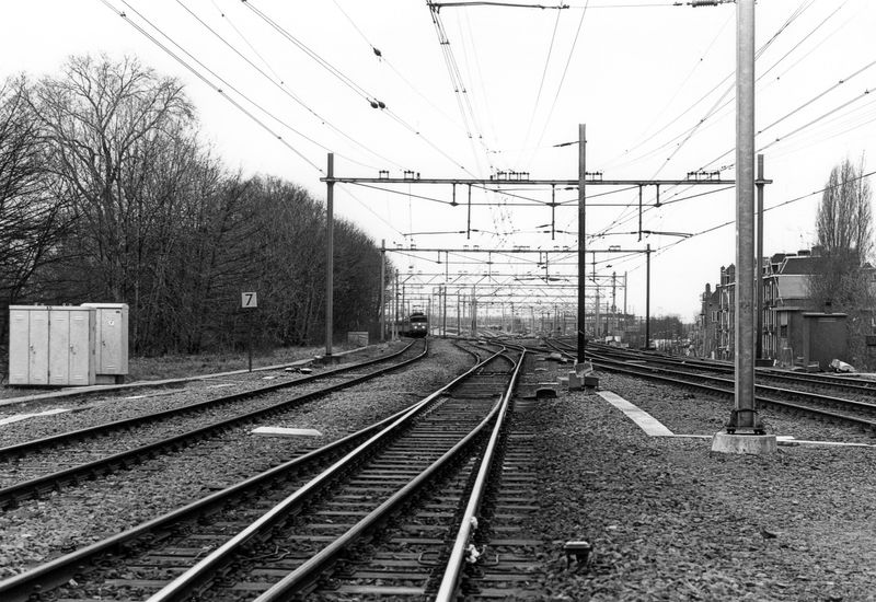 Het tableaugedeelte met de aansluiting van de spoorlijn richting Purmerend en het station Wormerveer d.d. 13 april 1983.