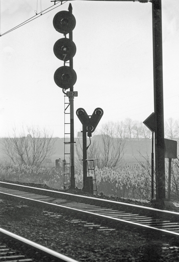 Het uitrijsein 112 met een "koeiekop" (sein SR 252).