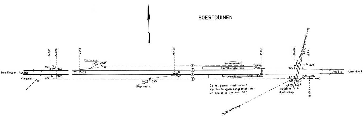 In de dienstruimte van de stationsgebouwen te Bilthoven, Den Dolder en Soest is een treinaankondiging, bestaande uit een geel lampje (voor ieder spoor en voor iedere rijrichting) en een schel aanwezig zodat het dienstdoende personeel kon zien vanuit welke richting op welk spoor een trein te verwachten viel.