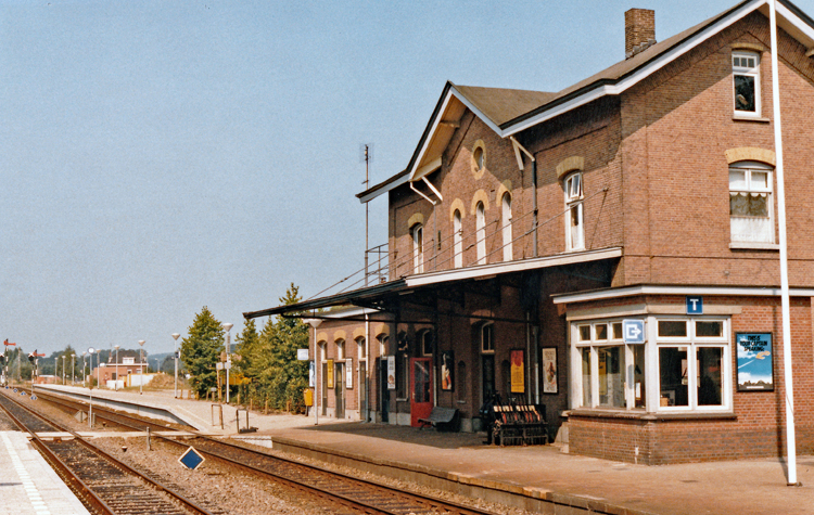 en het hetzelfde stationsgebouw in het jaar 1983.    (Collectie: Maarten Reijnhout (†)) (rechts).