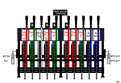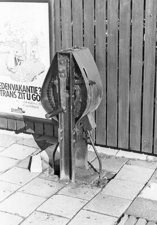 Het wisselwindwerk (links)  en de trekdraadsluiting (rechts)  d.d. 1 mei 1976.