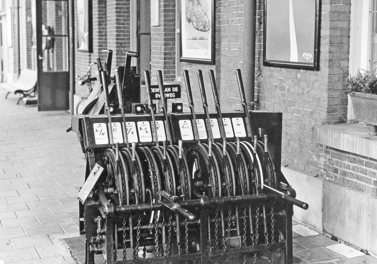 Het windwerk voor de bediening van het wissel 14 (links) en de trekdraadsluiting (midden en rechts).    (Collectie: Maarten Reijnhout (†))