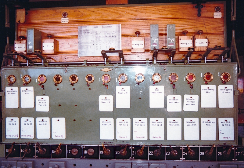 De uitrijseinen richting Akkrum (links) en het brugsein no. 4 zijde Akkrum (rechts) d.d. 1 oktober 1977.