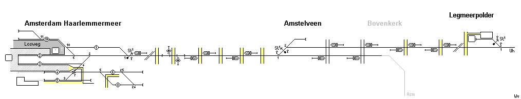 De tekening van het baanvak Uithoorn - Amsterdam Haarlemmermeer.