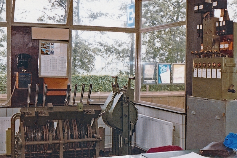 De Alkmaarse Handelinrichting, het windwerk voor de bediening van de overweg in de Stationsstraat en de blokkast in post T.