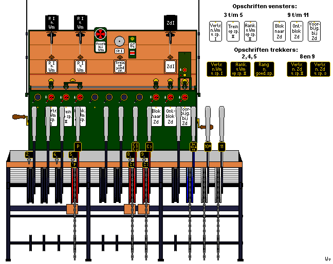 Voor spoor II was een spoorbezettingsvenster aangebracht; dit venster werd tegelijk met het venster "Aank. v. Wm op sp. II" bediend (de beide vensters werden wit).