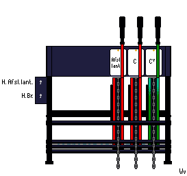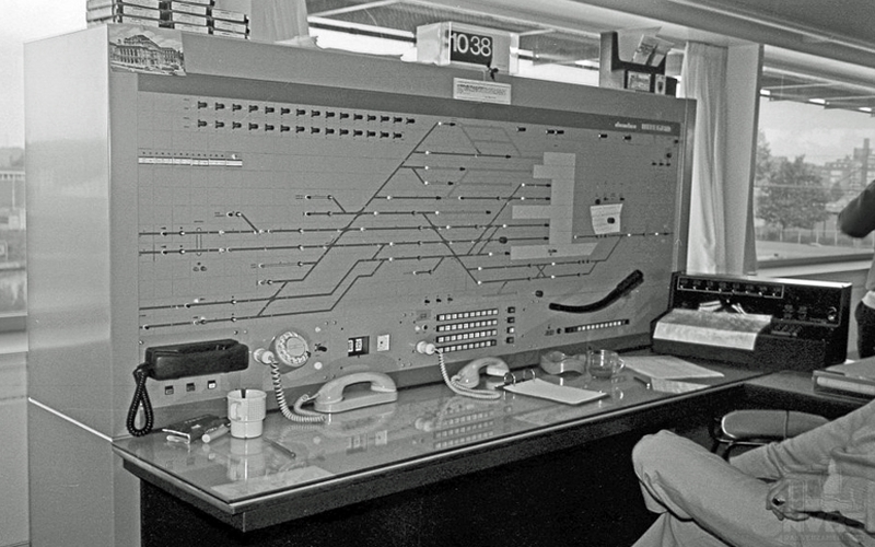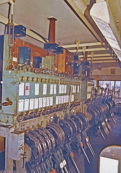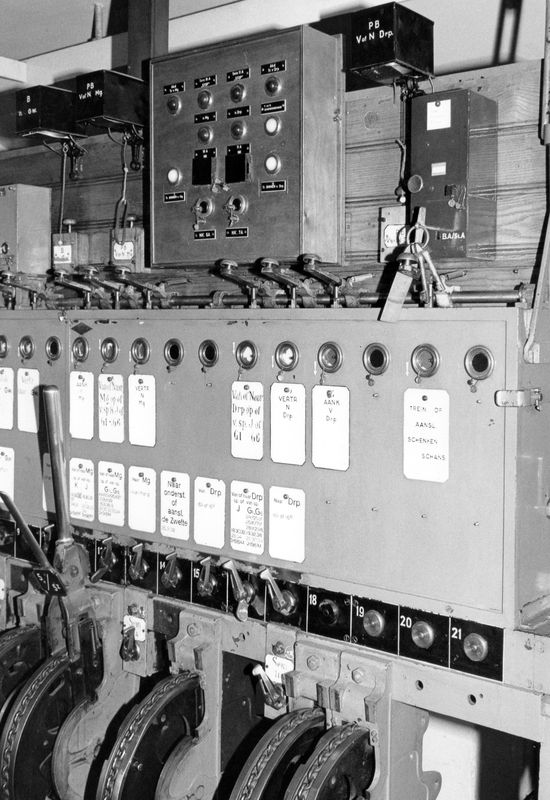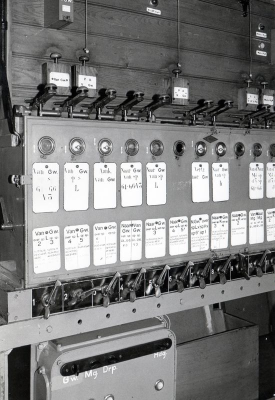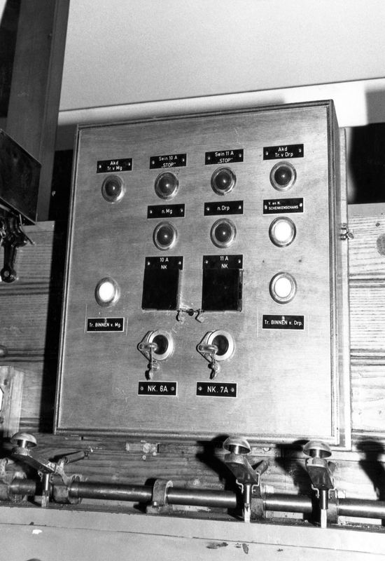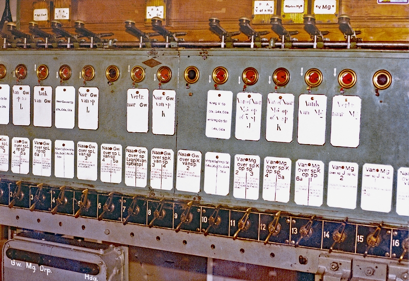 De kast onder de linealenkast dienst voor de bediening van de gele lampen bij de inrijseinen.