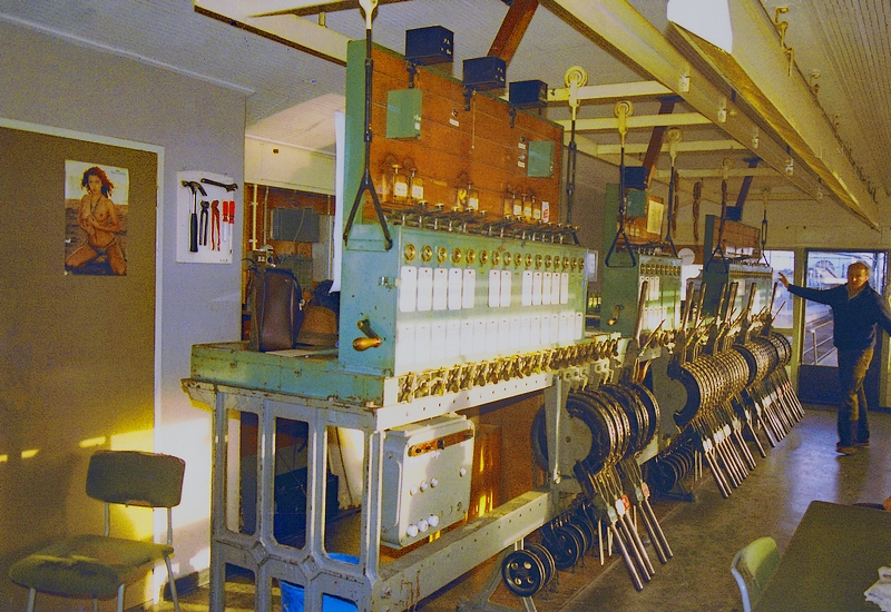 Het stelknoptoestel in de brugpost d.d. 21 september 1981.   (Foto: Wim Vos) (links) en hetzelfde toestel in het jaar 1983. (rechts)    (Collectie: Maarten Reijnhout ()).