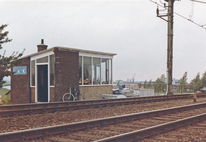 De overweg in de Schrans met post D d.d. 29 juli 1978.   (Foto: F.J. Hoevenagel) (links)