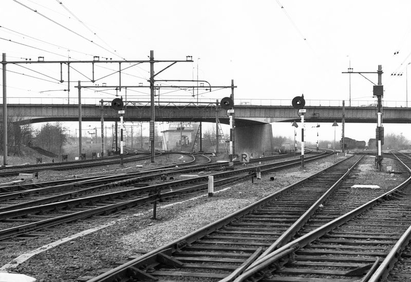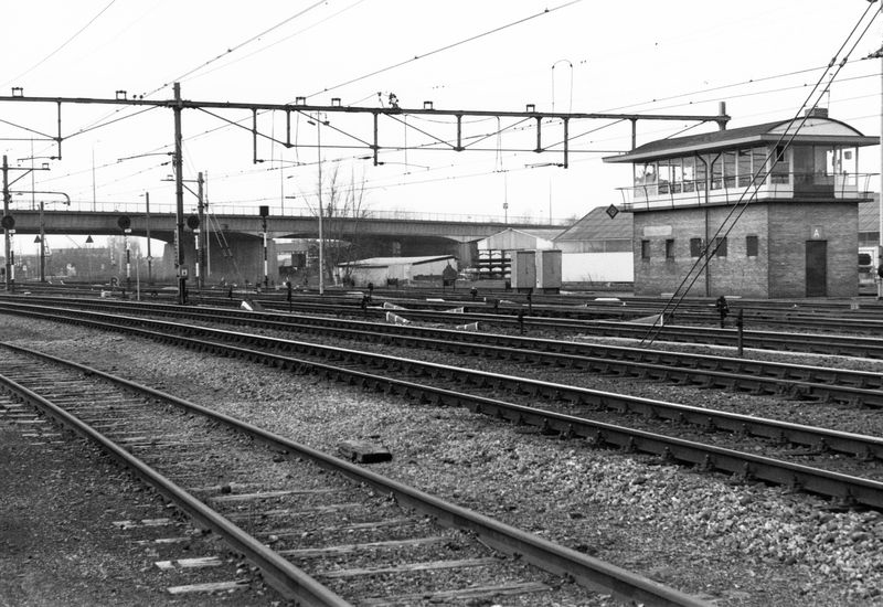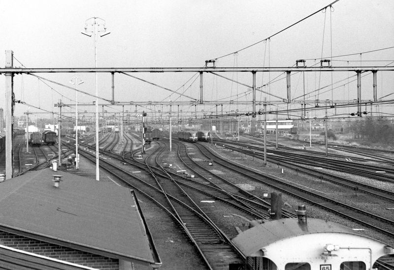 De oostzijde van het emplacement gezien in westelijke richting vanaf de overweg in de Schrans d.d. 11 maart 1967.   (Foto: R. Ankersmit ()) (links)