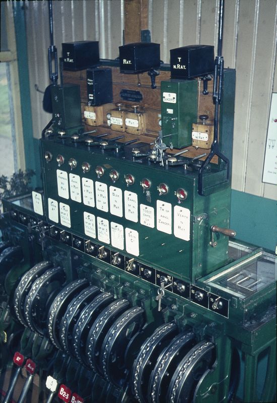 De semafoorwinder (links) en de blokkast (rechts) in post T d.d. 3 april 1965.