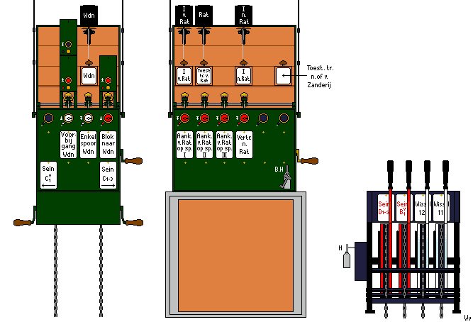 V.l.n.r. de semafoorwinder, de blokkast en de Alkmaarse Handelinrichting.