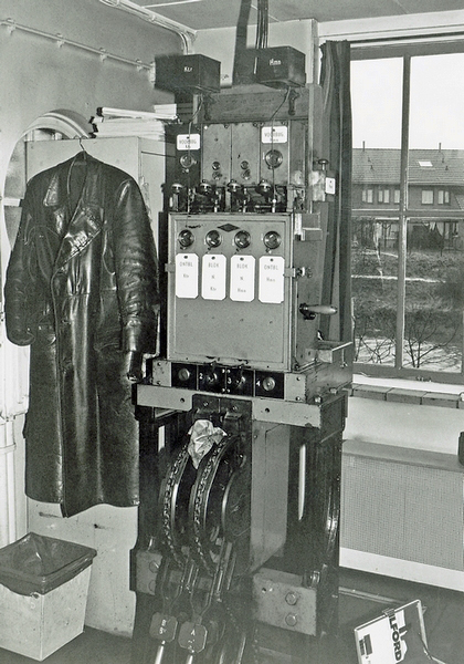 De handelinrichting in de blokpost d.d. 7 juni 1975.    (Foto: Wim Vos) (links) en hetzelfde toestel.    (Collectie: Maarten Reijnhout (†))(rechts).