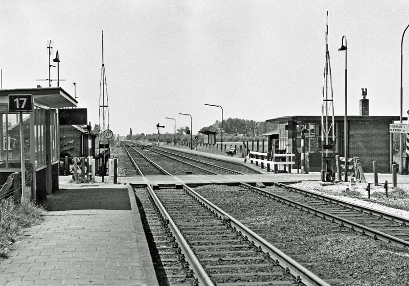 De sporen richting Kesteren = Rhenen (links)  en Hemmen = Dodewaard (rechts)  d.d 7 juni 1975.