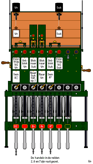 In de blokkast waren extra contacten aangebracht die er voor zorgen dat er geen ontblokking kan worden gegeven als er reeds voor de tegengestelde richting ontblokking is gegeven.