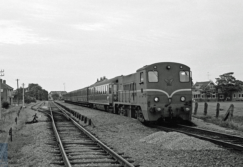 Het emplacement in noord-oostelijke richting met de goederensporen en de losweg en de omlopende locomotief NS 2225 van trein 3878 d.d. 23 augustus 1960.