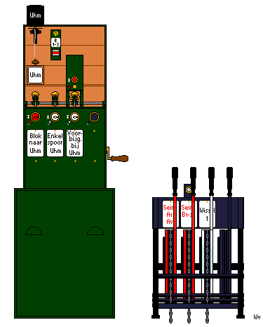 Tekening van de blokkast in post T en de Alkmaarse Handelinrichting op het perron.