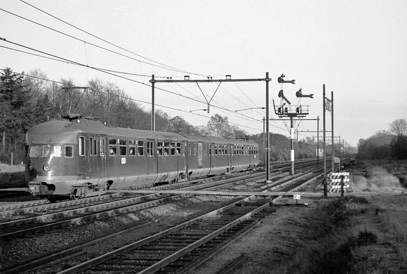 Het treinstel NS ElD3 408 als stoptrein 1642 (Amersfoort - Utrecht) d.d. 20 december 1958.