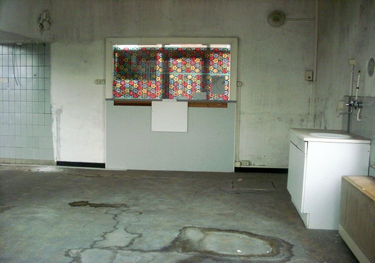 In de erker was post T gevestigd; het bedieningstoestel stond op de plek van de vochtkringen op de vloer. Op de achtergrond de restanten van het loket d.d. 18 februari 2010.