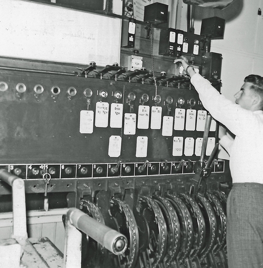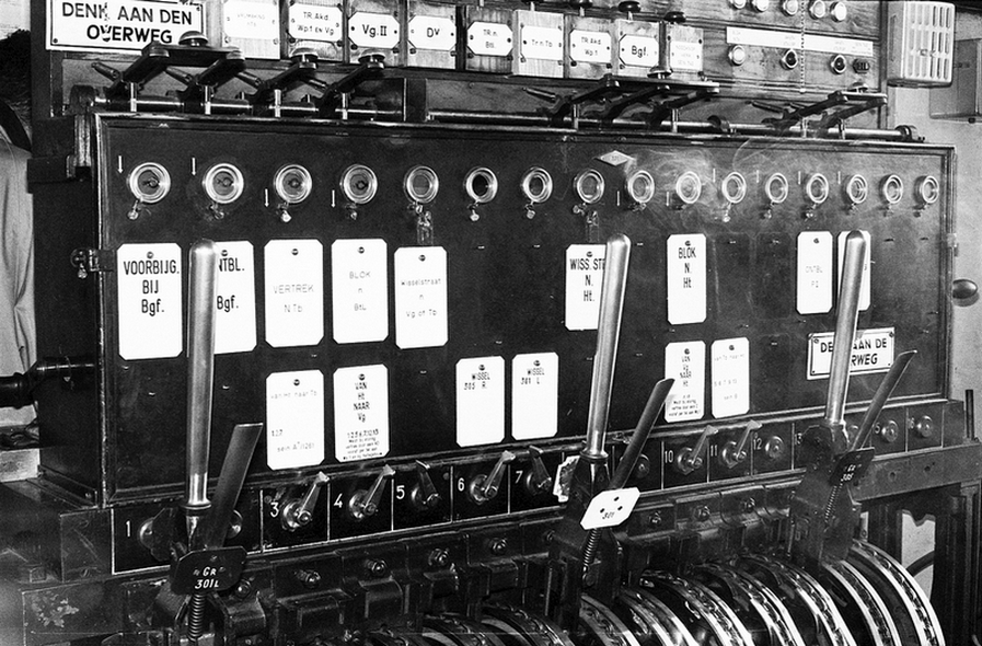 De inmiddels overleden seinhuiswachter Jan Burgers aan het werk in post II in het jaar 1960.
