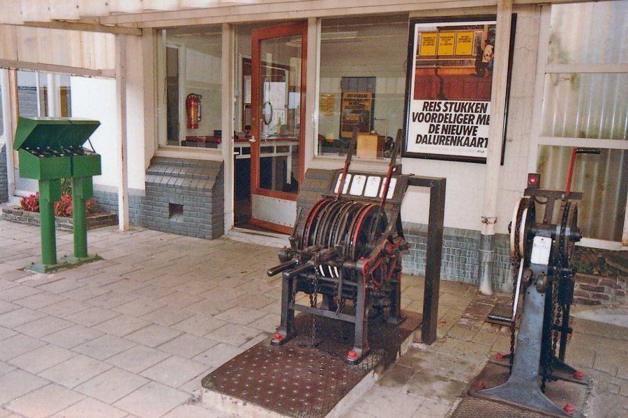 Op het perron stond dan ook een bedienkast voor de bediening. Tegen de regen was er een kap over geplaatst.