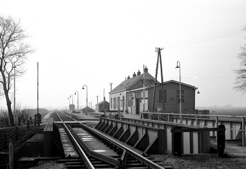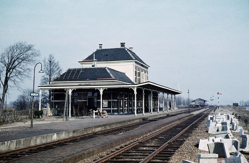 Het inmiddels vervallen haltegebouw te Koudum - Molkwerum d.d. 3 april 1958.