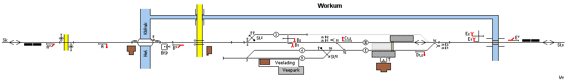 Ligging van de diverse stations en aansluitingen tussen Workum en Stavoren.