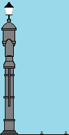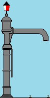 Een lantaarn op de standpijp tonende een rood veld aan de zijde waar de uitlooppijp boven het spoor staat, aan de andere zijde een melkwit veld.