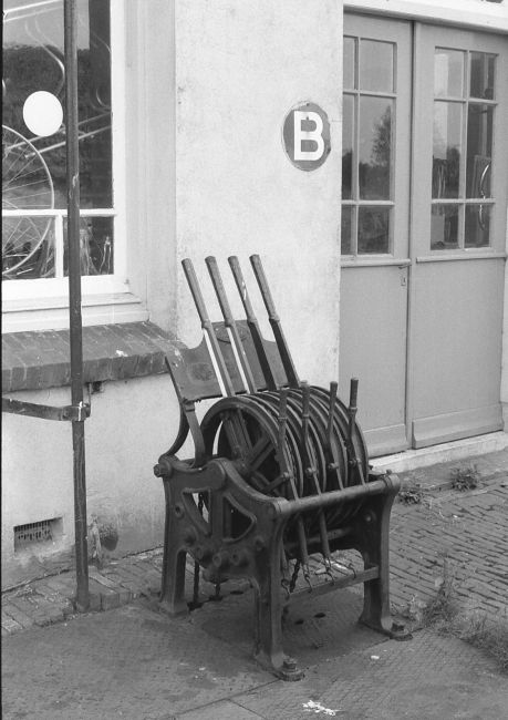 Foto links: Het handeltoestel van Vinkeveen waarvan alleen de wissels en het bruggrendel werden bediend. Foto midden: De beweegbare brug bij Vinkeveen. Foto rechts: Het brugsein B te Vinkeveen.