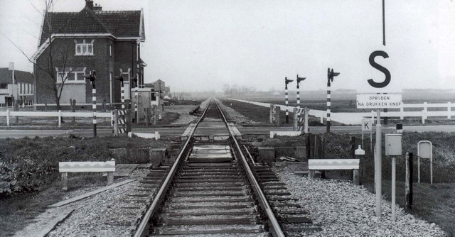 Foto links: De overweg met de kruising met Rijksweg No 2 (A2). Foto midden: Een 2200 passeert de overweg. Tegenwoordig liggen er hier twee keer vijf rijstroken. Foto rechts: Sein 102 was een overweg en brugvoorsein. Een uitzondering omdat voorseinen normaal nooit als dwergsein werden uitgevoerd. Op de achtergrond de overweg.