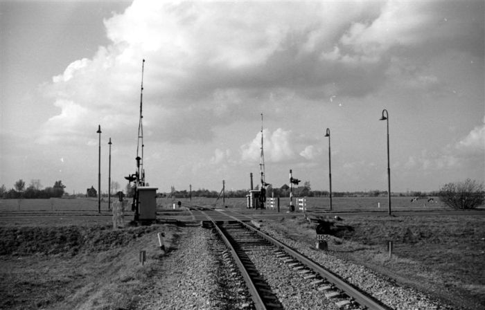 Er stonden drie lichtseinen met bijbehorende voorseinen voor de twee verst weg liggende seinen. Bijzonderheid was dat dit een van de weinig dwergseinen type '46 waren welke een achtergrondscherm hadden. Ook bijzonder was dat twee van deze dwergseinen een dwergvoorsein hadden die ook, maar dan een vierkant, achtergrondscherm hadden. De seinen 104 en 110 waren er voor de brug en 104 en 106 voor de overweg.
