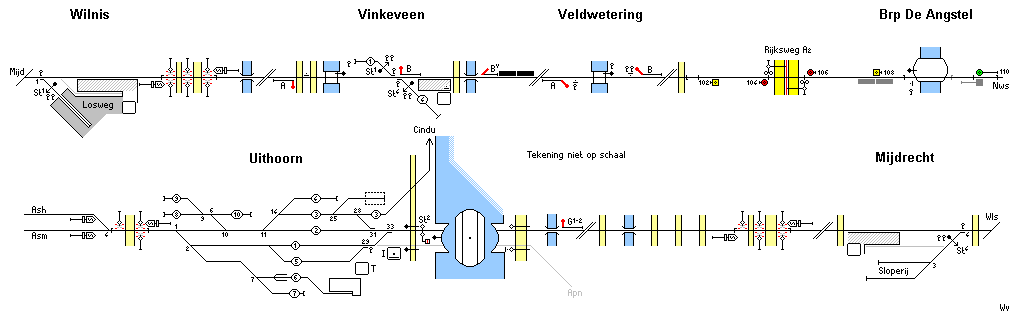 De tekening van het baanvak Uithoorn - Aalsmeer / Aalsmeer Oost.